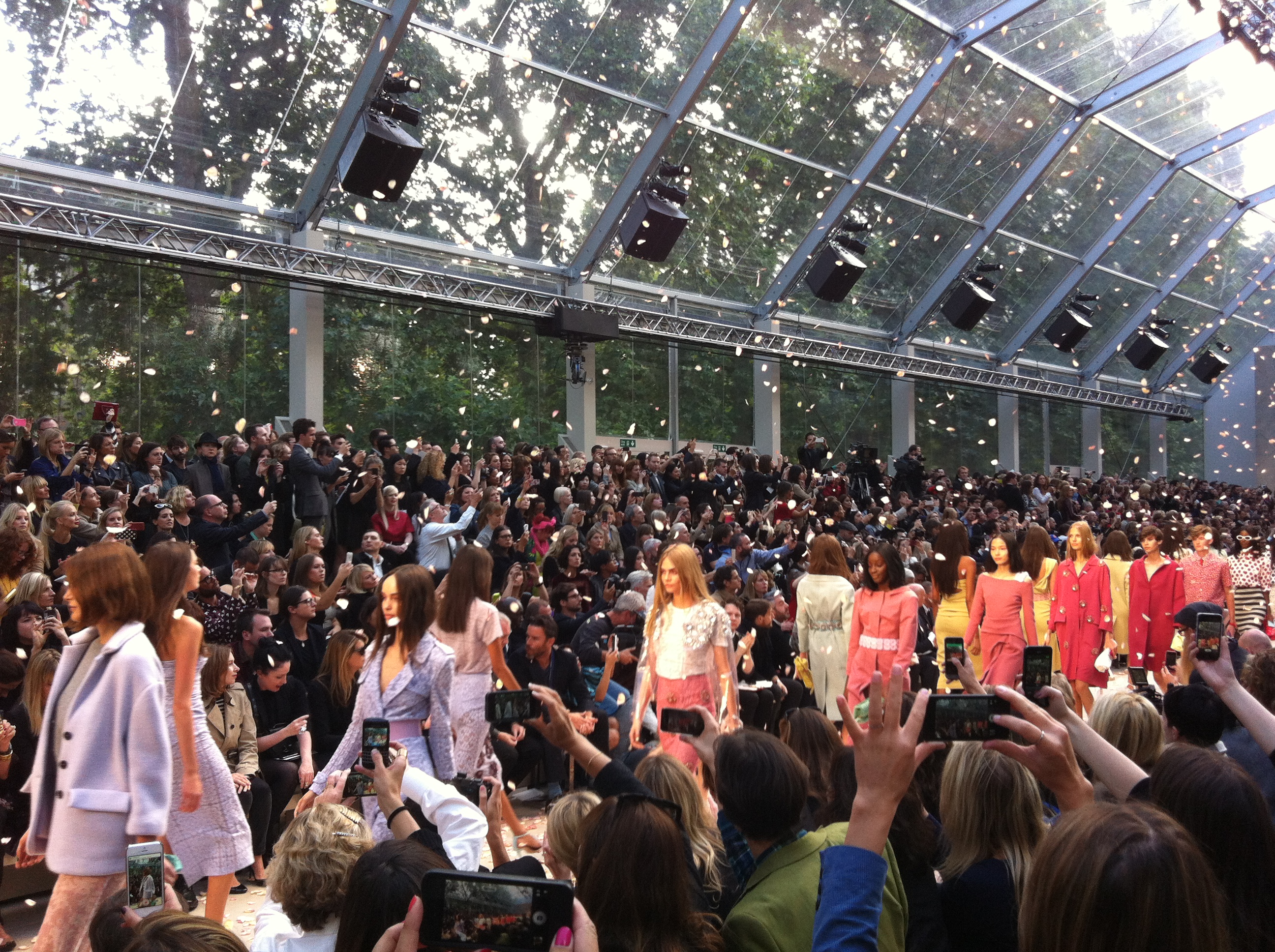 ¡La apertura de puertas se ha iniciado a la 1:45pm, sin embargo muchas personas estaban esperando mucho antes en los alrededores de Kensignton Gardens para inmortalizar a sus celebridades favoritas! Anna Wintour, Suzy Menkes, Olivia Palermo, Sienna Miller, Poppy Delevigne, Suzy (blogger) han sido algunos de los asistentes VIP al desfile de Burberry Prorsum PV14… Aunque ha valía la pena ya que el espectáculo ha sido perfecto y maravilloso.