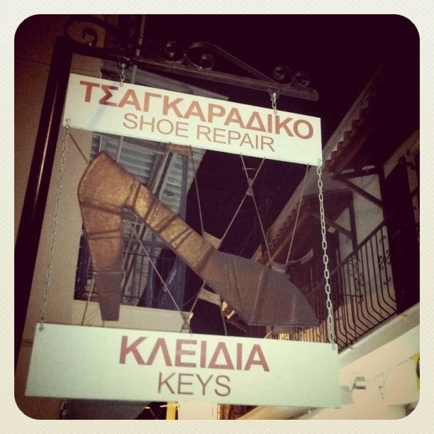 Algo tan común como el cartel de un local de reparación de calzado puede llegar a ser una instantánea ineludible, un momento inolvidable durante un viaje por Grécia. Belleza simple, simplicidad bella. ¿No te parece?