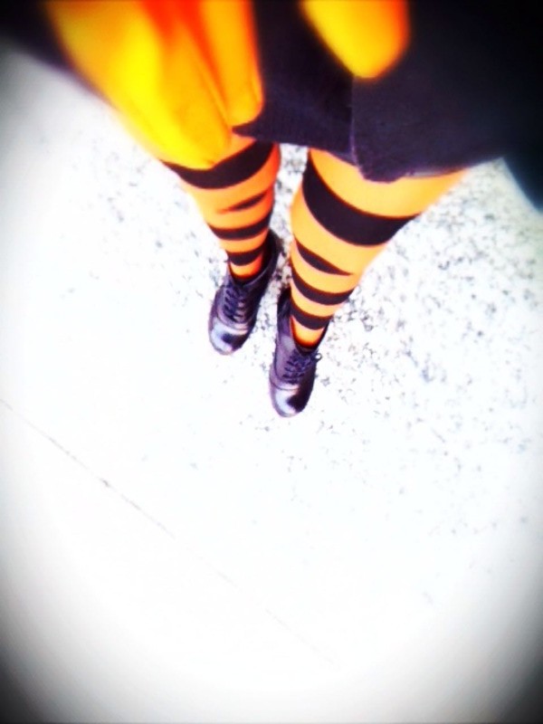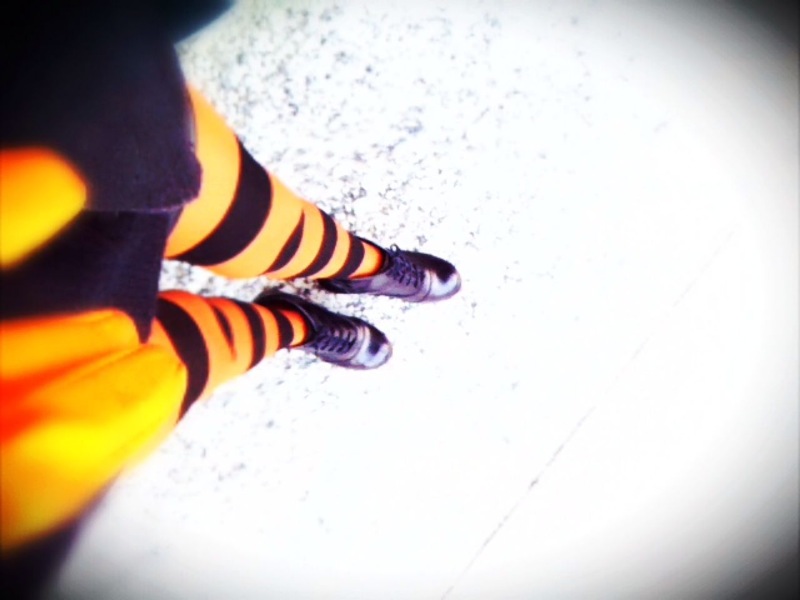 Las rayas están de vuelta y cuánto más grandes sean, más sexy. Aquí estoy yo con unas medias marrones y negras, aunque en la imagen parezcan de color naranja. De todos modos el color del 2012 será el Mandarina Tango… ¡Venga atrévete, sé salvaje y pruébatelas! Créeme, será la número uno allá donde quiera que vayas.