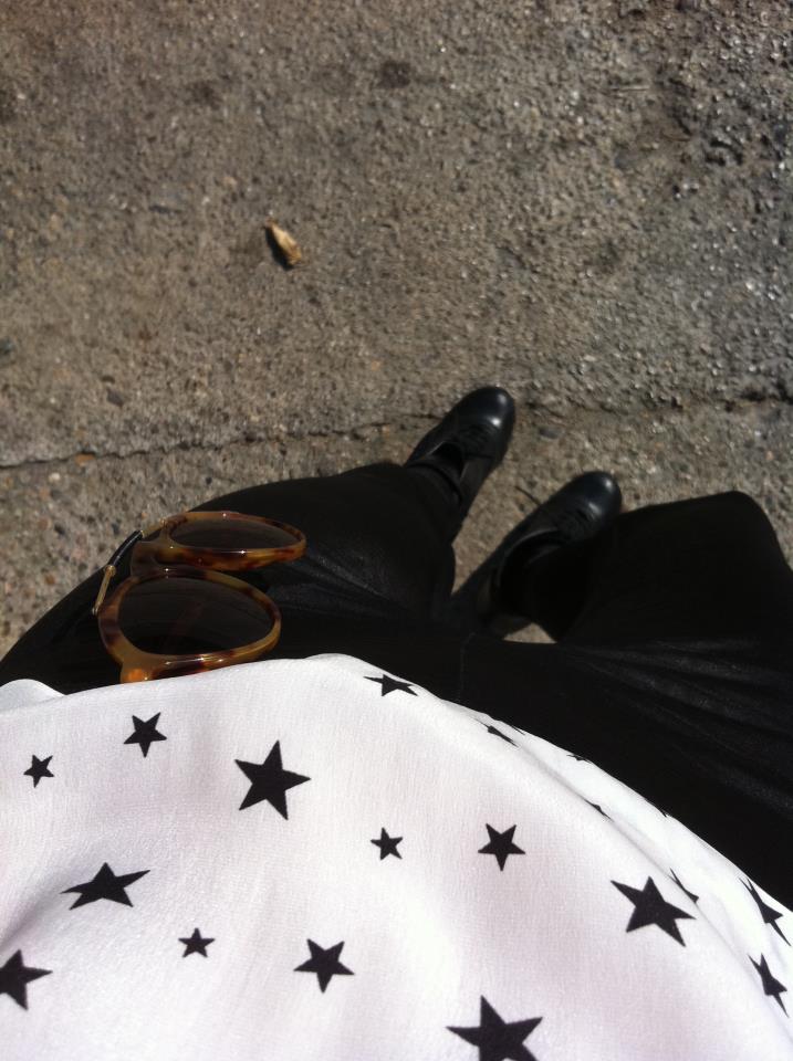Yes, it is true. I can tell my life trought shoes. Million stories come from my feet, step by step, day by day. If you think about it you will see it on the same way. Every new pair of shoes it is a new experience for me. Here you can see my new tights with magazines print and my black leather shoes with gold hill that I bought to celebrate my new job.